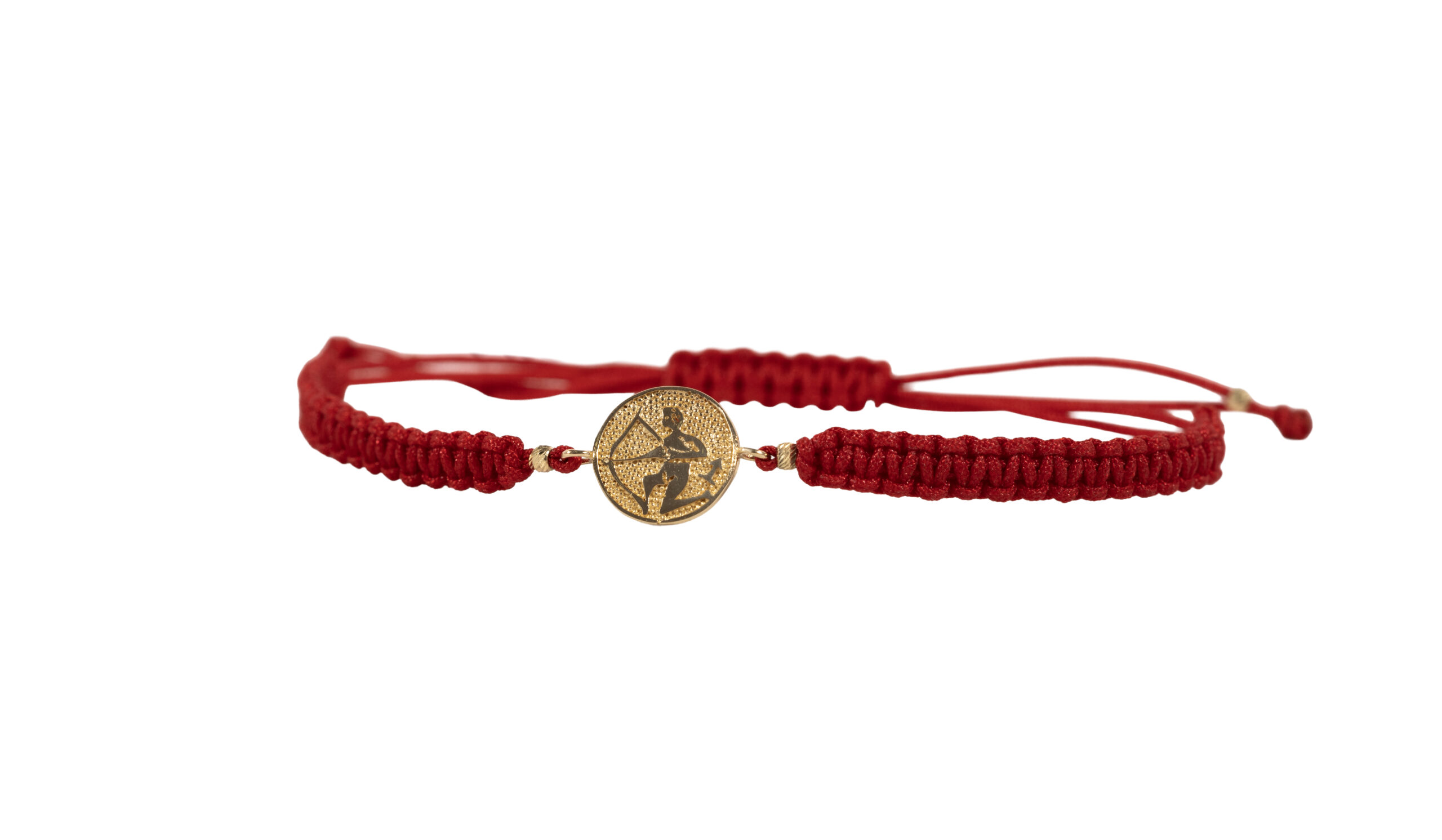 Brățară cu șnur textil,reglabil, zodia Săgetător Aur 14k-585